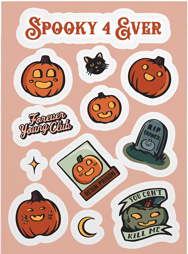 Fourthwall offers custom kiss-cut sheets that allow you to design everything from single creepy characters to full sets of haunted icons, giving your fans collectible stickers they’ll love to mix, match, and show off.